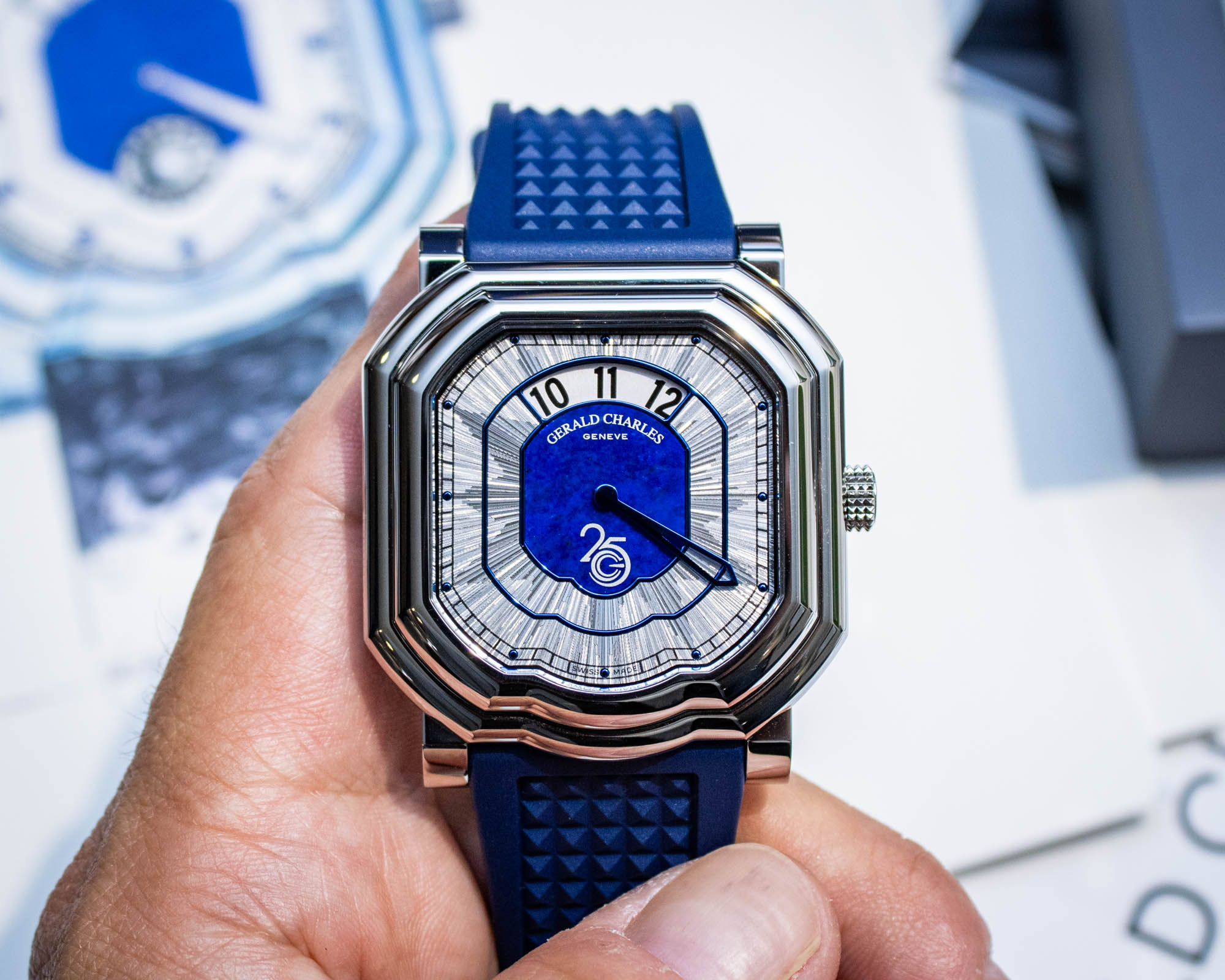 To celebrate its 25th anniversary, Gerald Charles unveiled a striking limited-edition timepiece at Watches & Wonders Geneva 2025, which reimagines a rare and exclusive model from the brand’s archives. Based upon the Genta-designed GC39 watch from 2005, the new Gerald Charles Maestro GC39 25th Anniversary Edition is hardly an exact recreation of the original, and it elevates the model’s distinct aesthetic with a grade 5 titanium case, a jumping-hours complication, and an intricate multi-component dial that incorporates a slice of blue lapis lazuli. Although the GC39 25th Anniversary Edition still adheres to Genta’s original vision, it is also the largest Maestro watch that the Swiss brand has ever put forward, and it represents an entirely more ornate expression of this fundamentally resplendent concept.